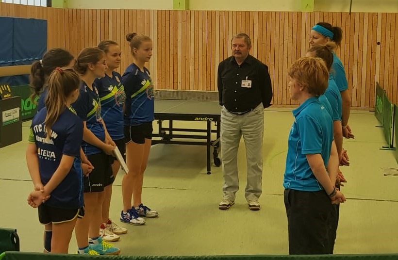 Parallel zu den Schülerteams trat auch unsere 1. Damenmannschaft zum ersten Heimspiel der Saison an die Tische. Da Chiara leider immer noch nicht fit war, gab es diesmal gleich zwei Debütantinnen im Team. Zum einen die 11-Jährige Sophia, die diesmal allerdings nur im Doppel mitwirkte, und zum anderen die 12-Jährige Michelle die in den Einzeln Oberligaerfahrung sammeln durfte.