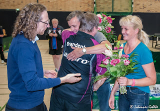 Stellvertretend für die vielen fleißigen Helfer nahm die fleißige Küchenfee Katrin Postler und unser Hausmeister Peter Mews, ein großes Dankeschön vom TTVB-Präsidenten und entgegen. |